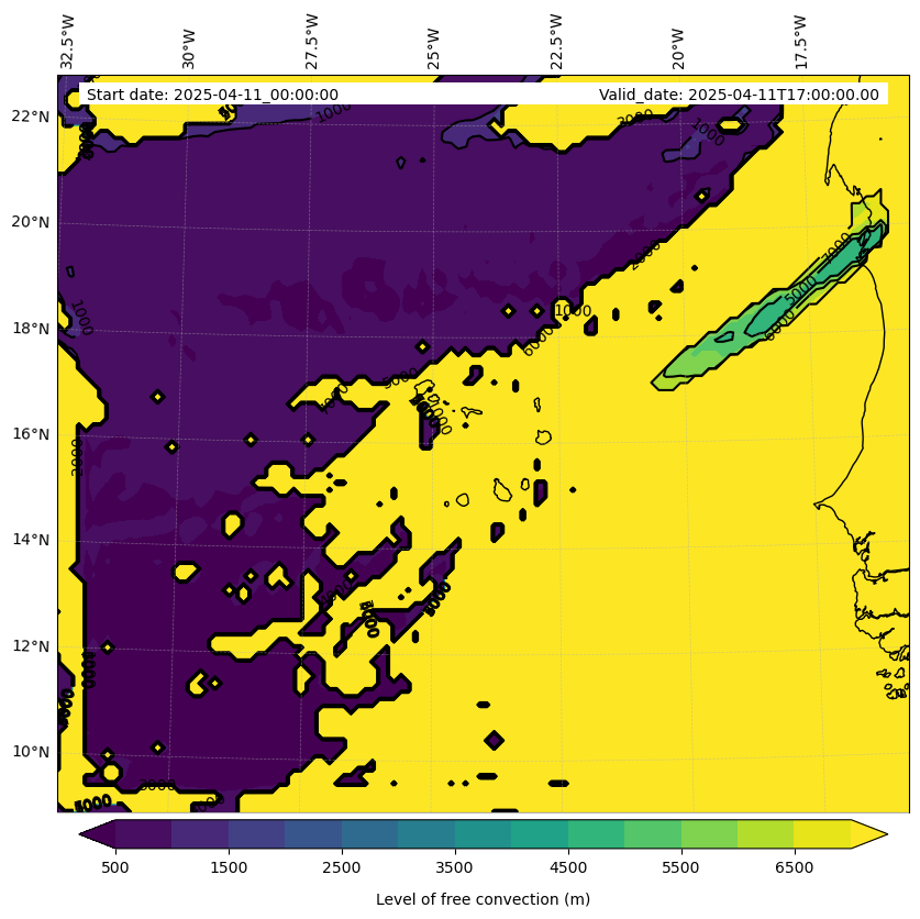 - Level of free convection (m)