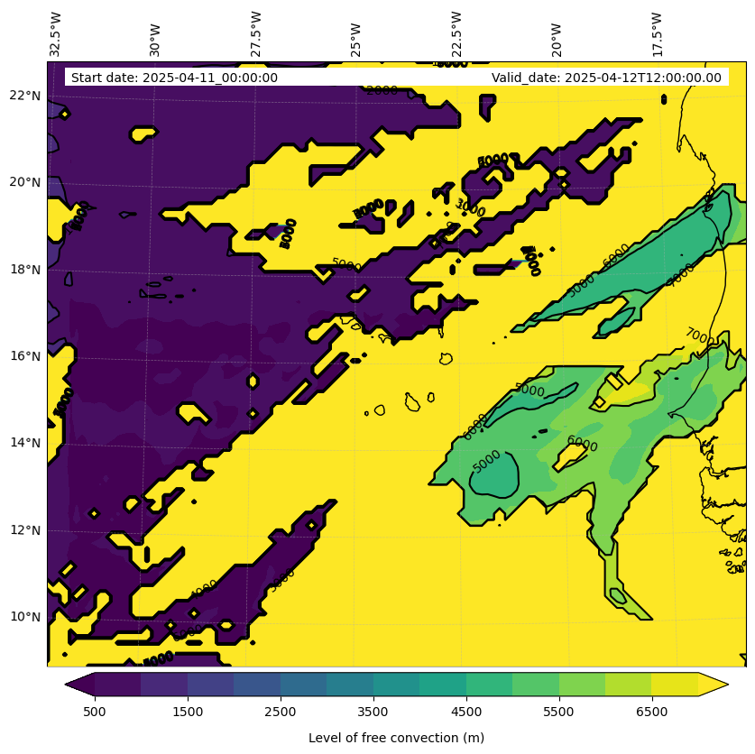 - Level of free convection (m)