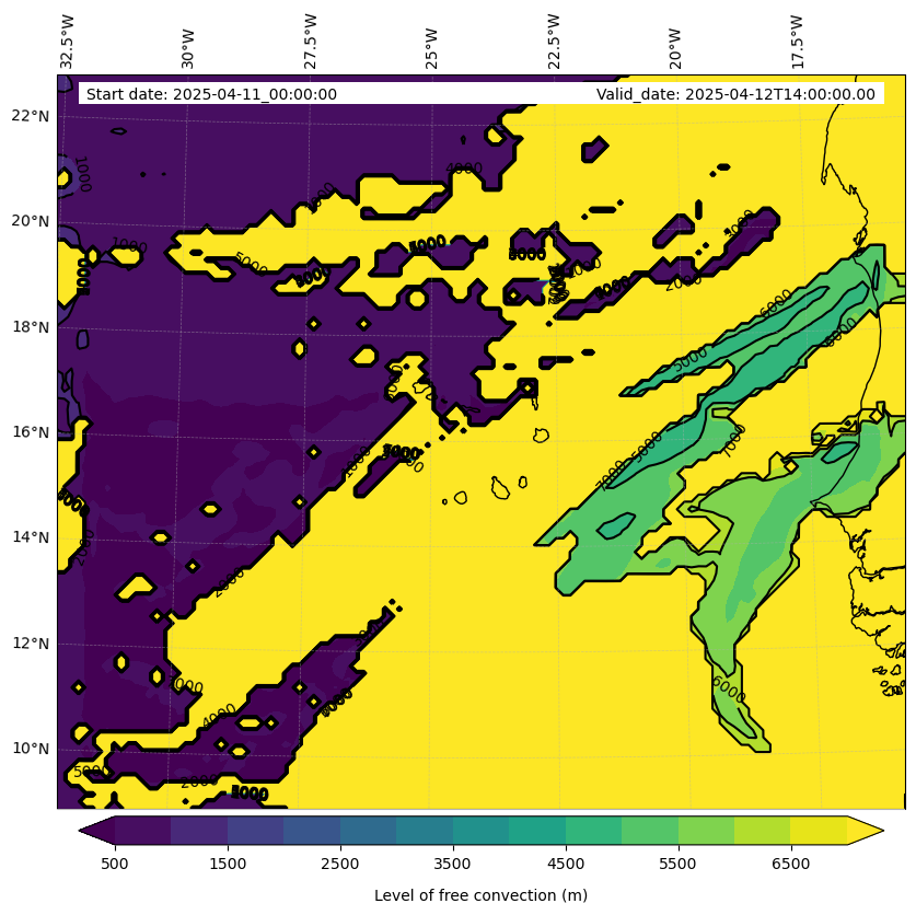 - Level of free convection (m)