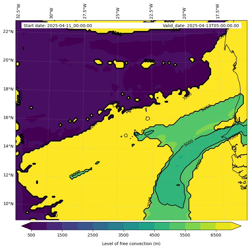 - Level of free convection (m)
