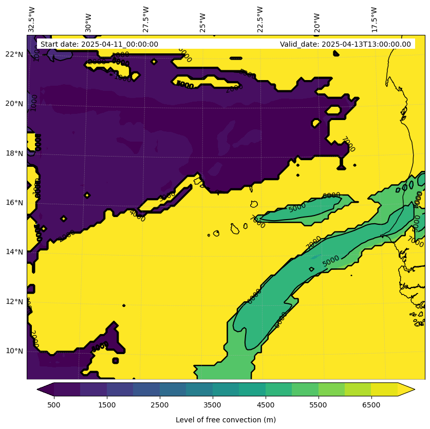 - Level of free convection (m)