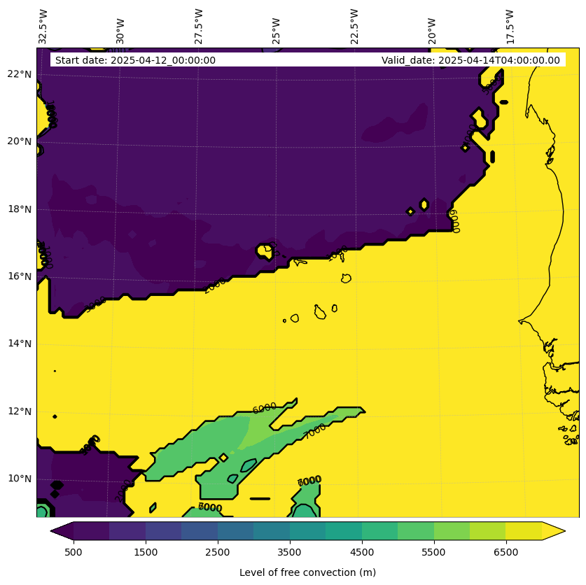 - Level of free convection (m)