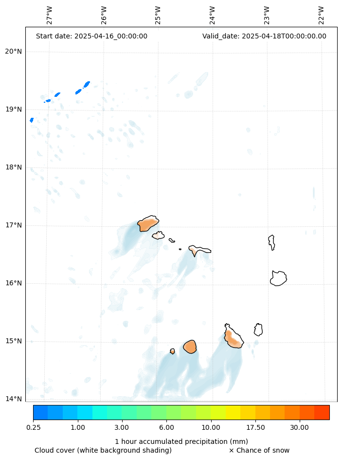 - Snow mixing ratio (g kg¯¹)