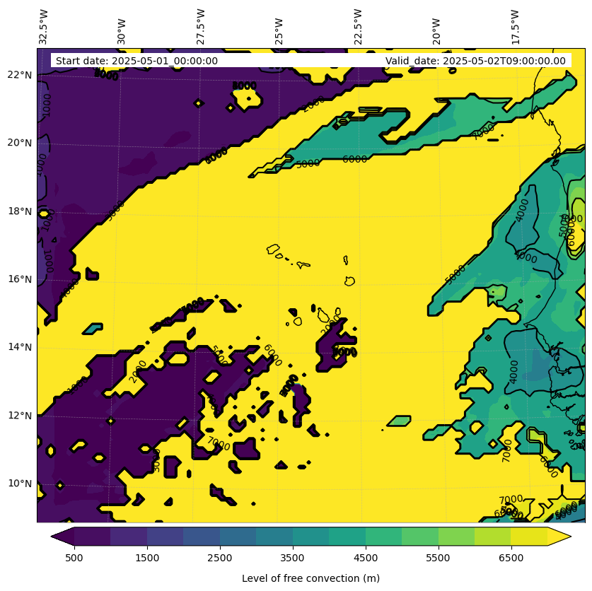 - Level of free convection (m)