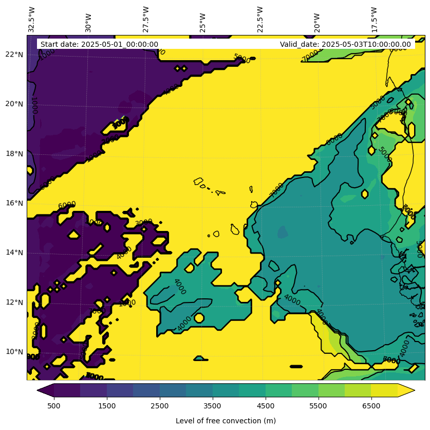 - Level of free convection (m)