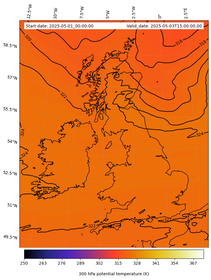 - Equivalent Potential Temperature (K)- 300 hPa