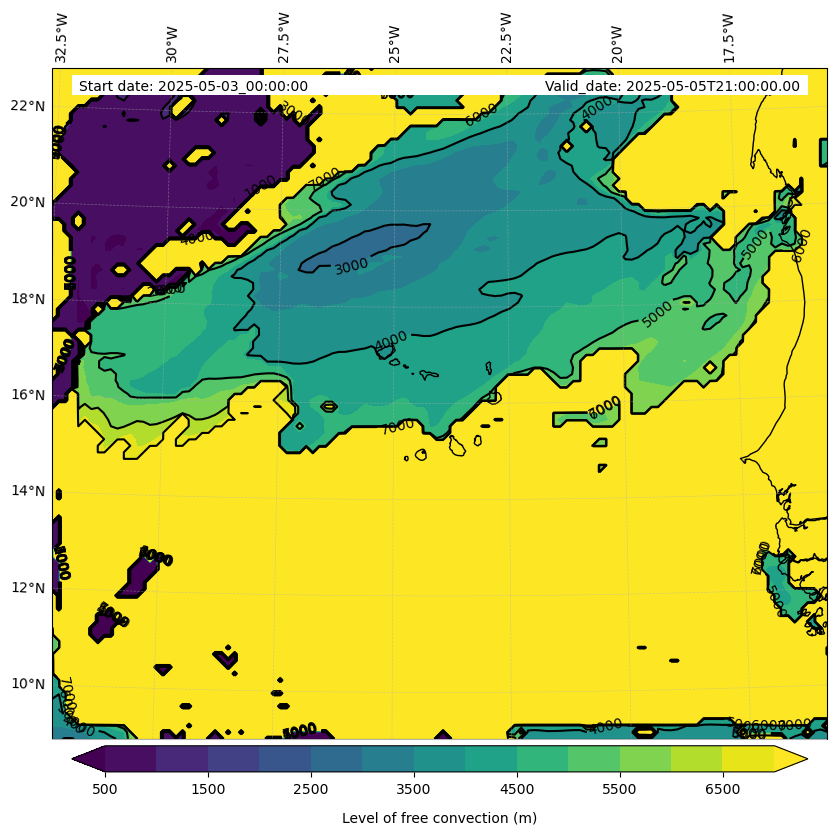 - Level of free convection (m)