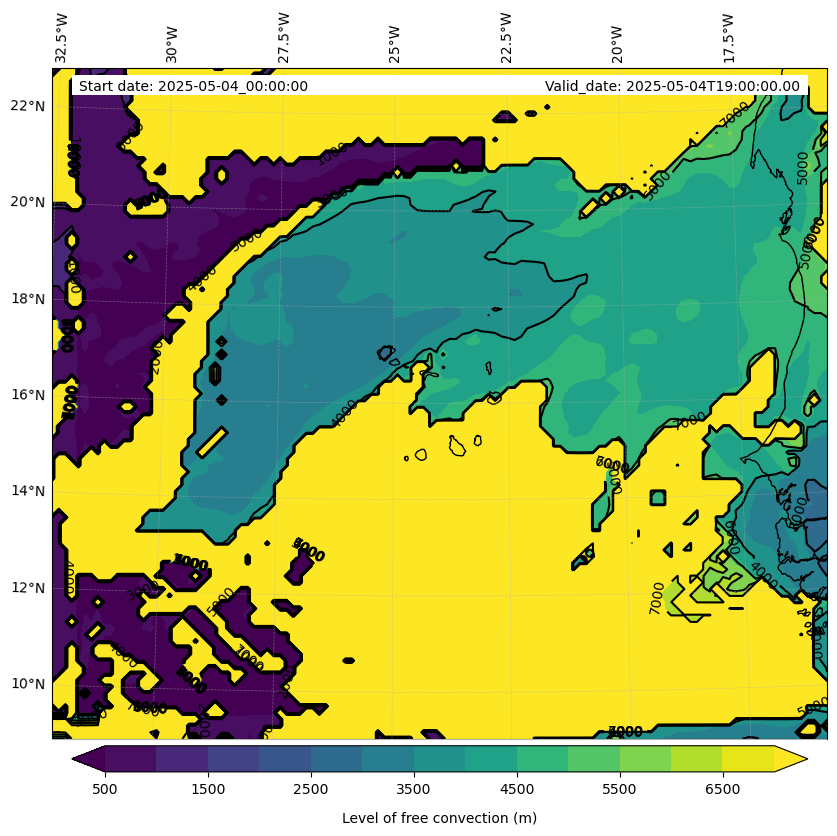 - Level of free convection (m)