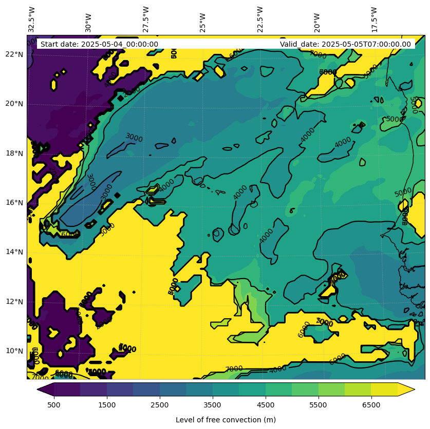 - Level of free convection (m)