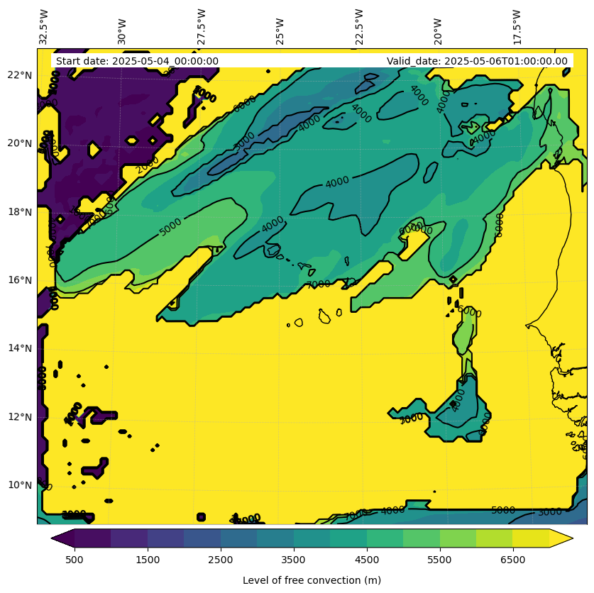 - Level of free convection (m)