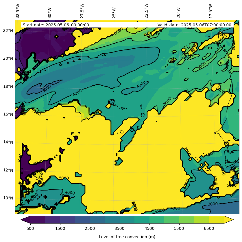 - Level of free convection (m)