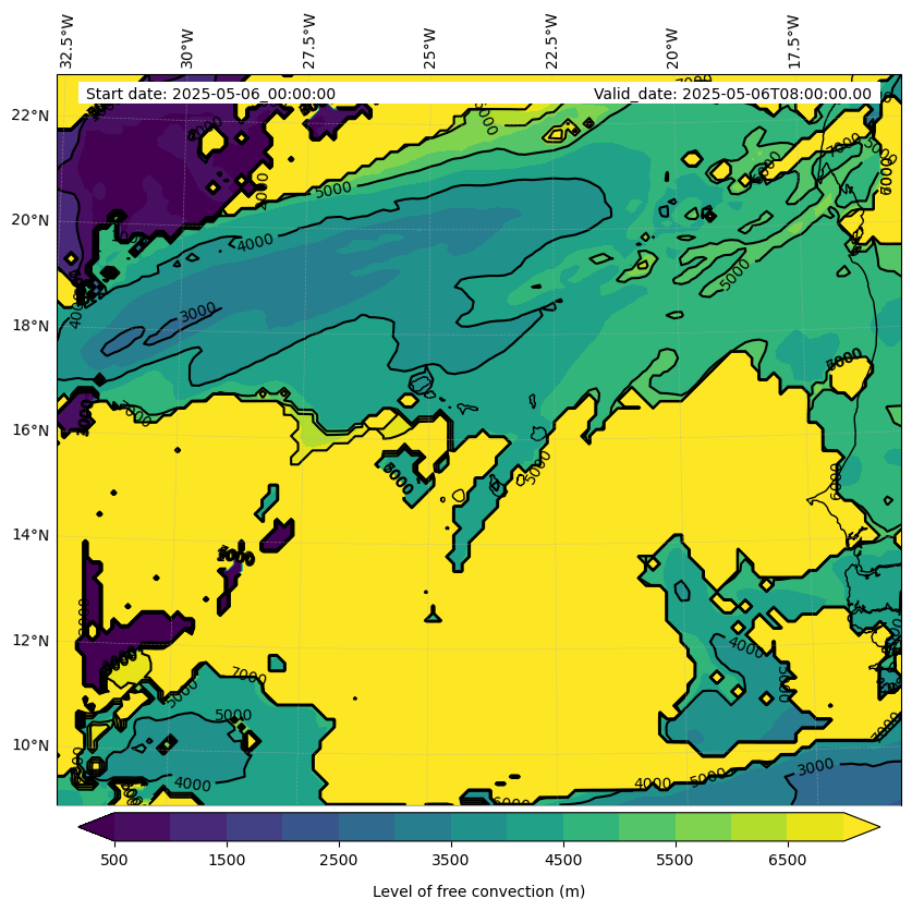- Level of free convection (m)