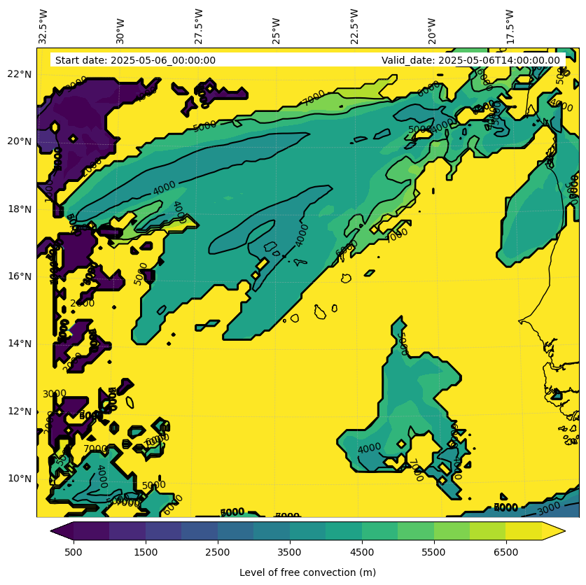 - Level of free convection (m)