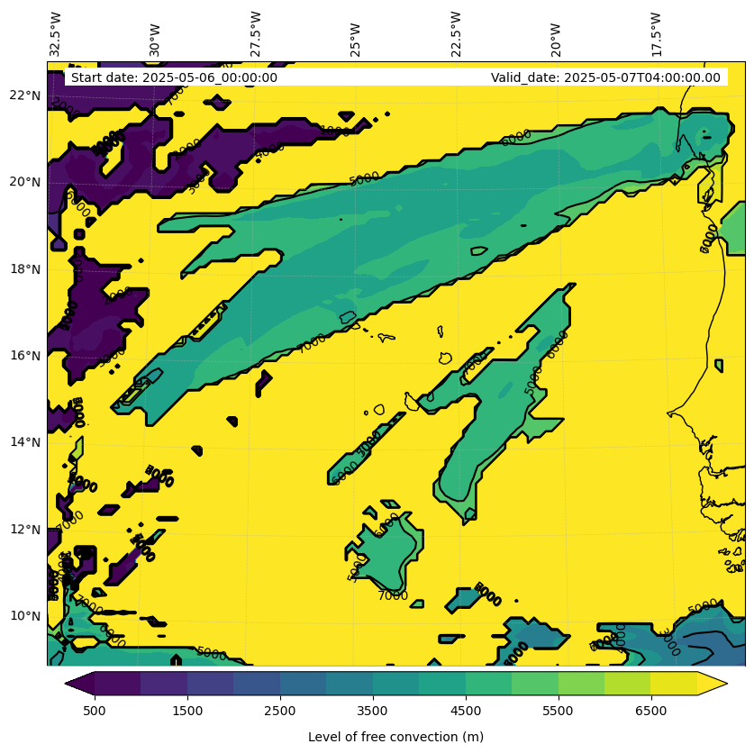 - Level of free convection (m)