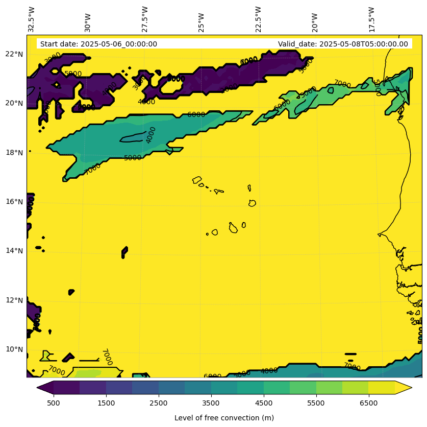 - Level of free convection (m)
