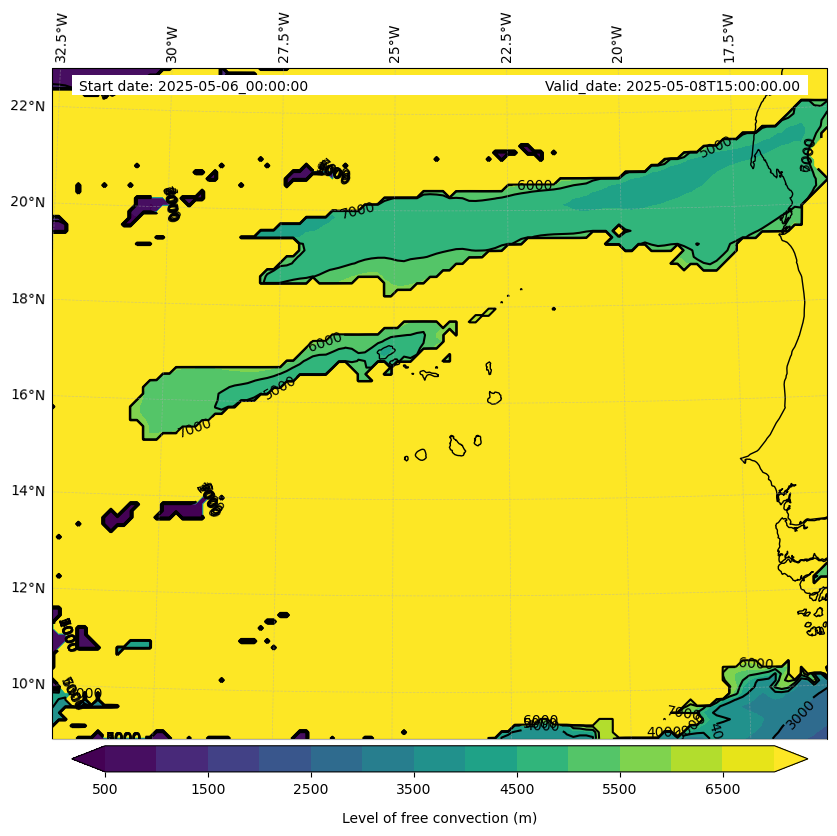 - Level of free convection (m)