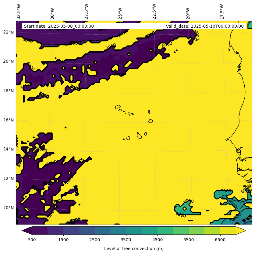 - Level of free convection (m)
