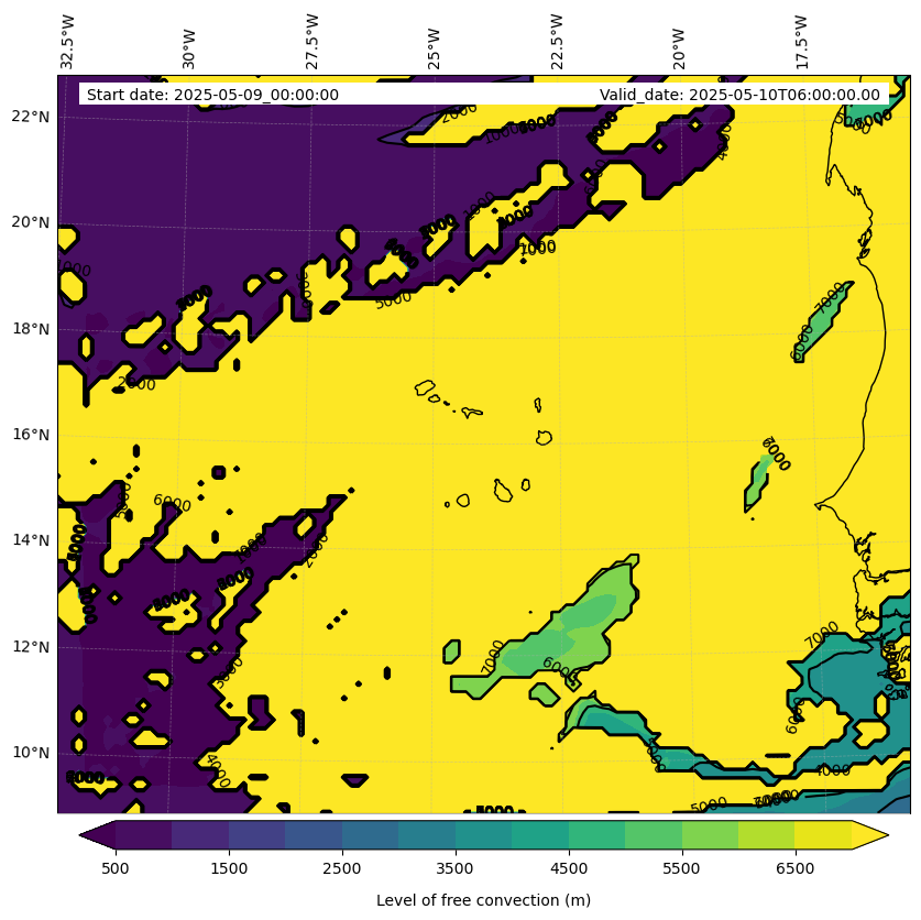 - Level of free convection (m)