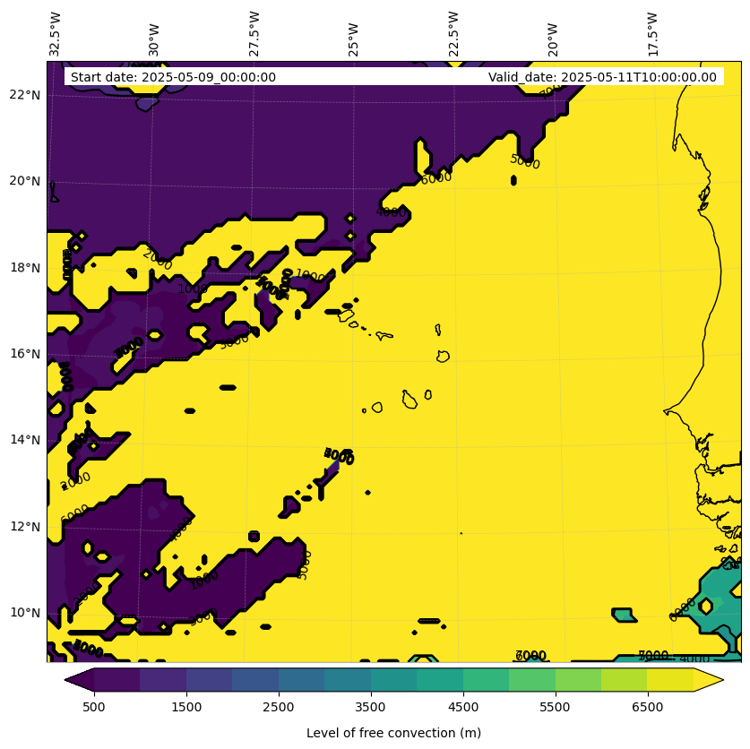 - Level of free convection (m)