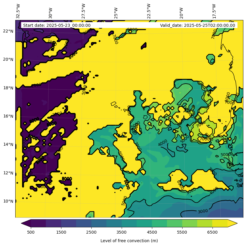 - Level of free convection (m)