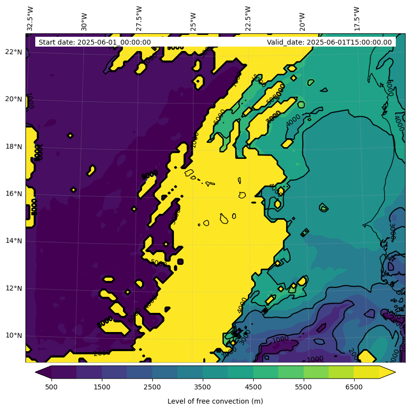 - Level of free convection (m)