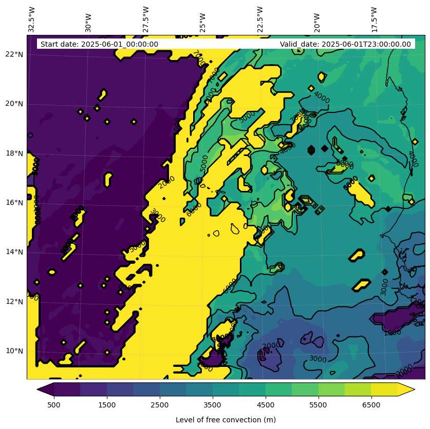 - Level of free convection (m)