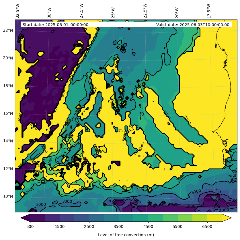 - Level of free convection (m)