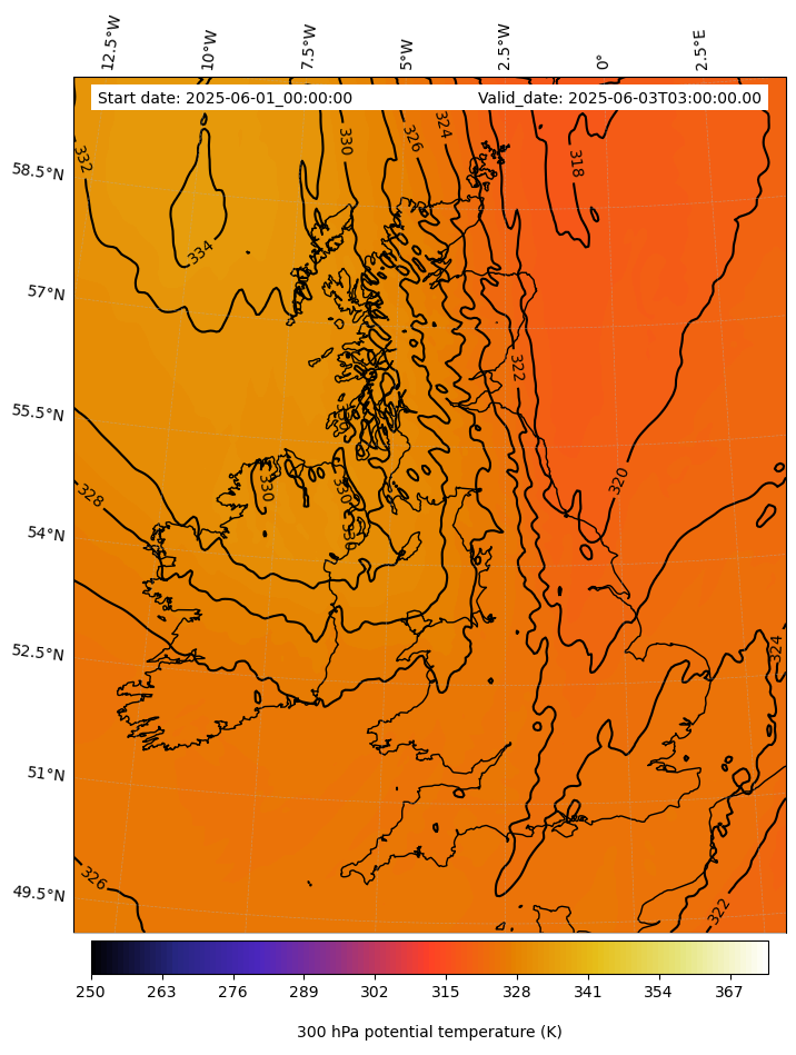 - Equivalent Potential Temperature (K)- 300 hPa