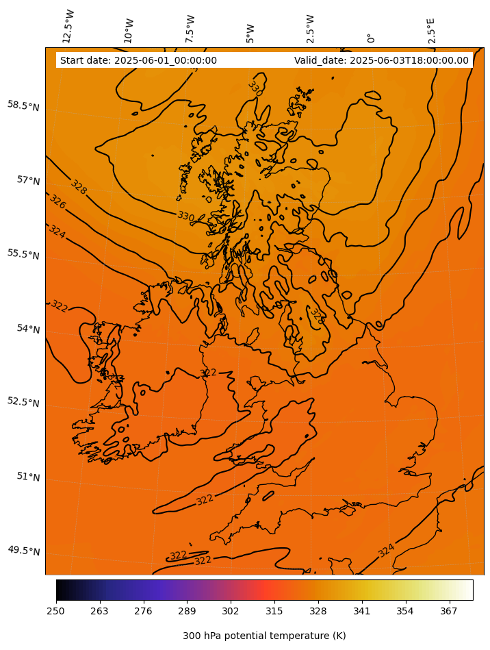 - Equivalent Potential Temperature (K)- 300 hPa