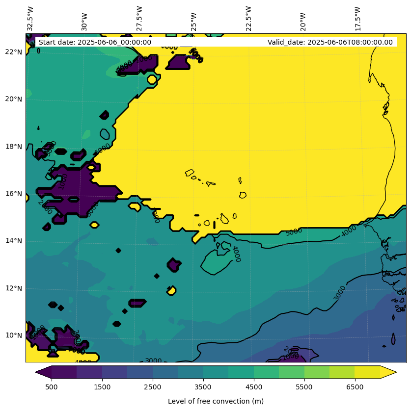 - Level of free convection (m)