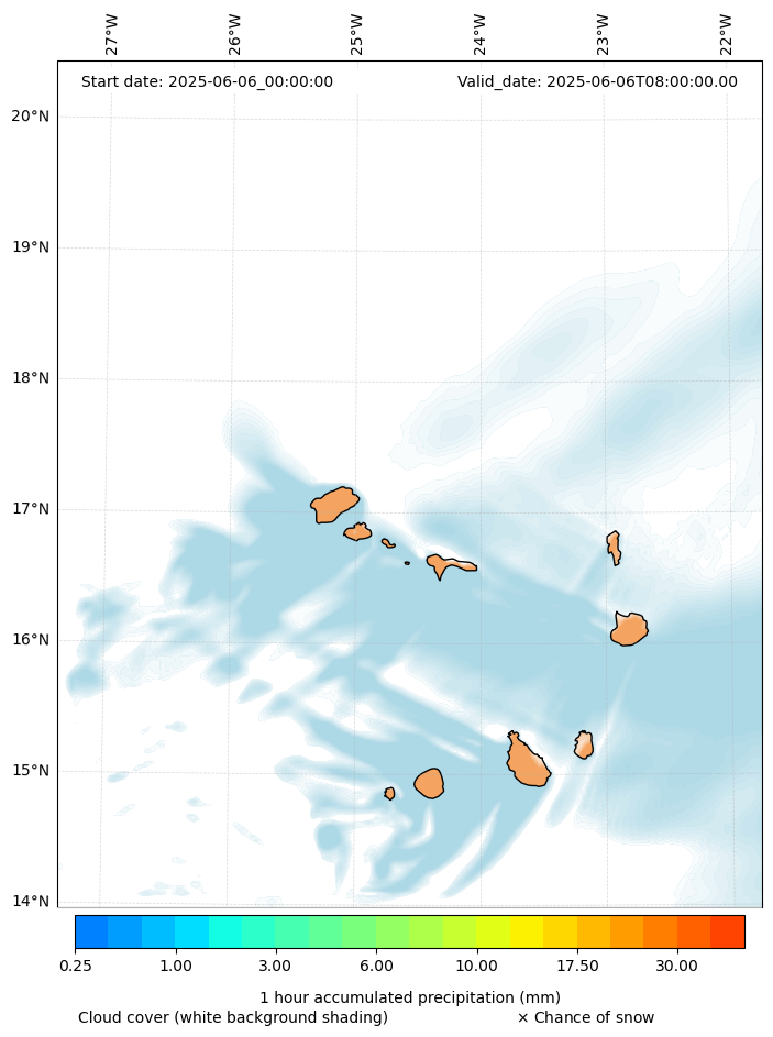 - Snow mixing ratio (g kg¯¹)
