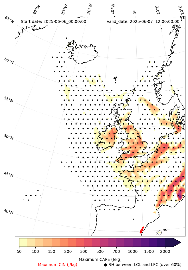 - Maximum CAPE (J/Kg)