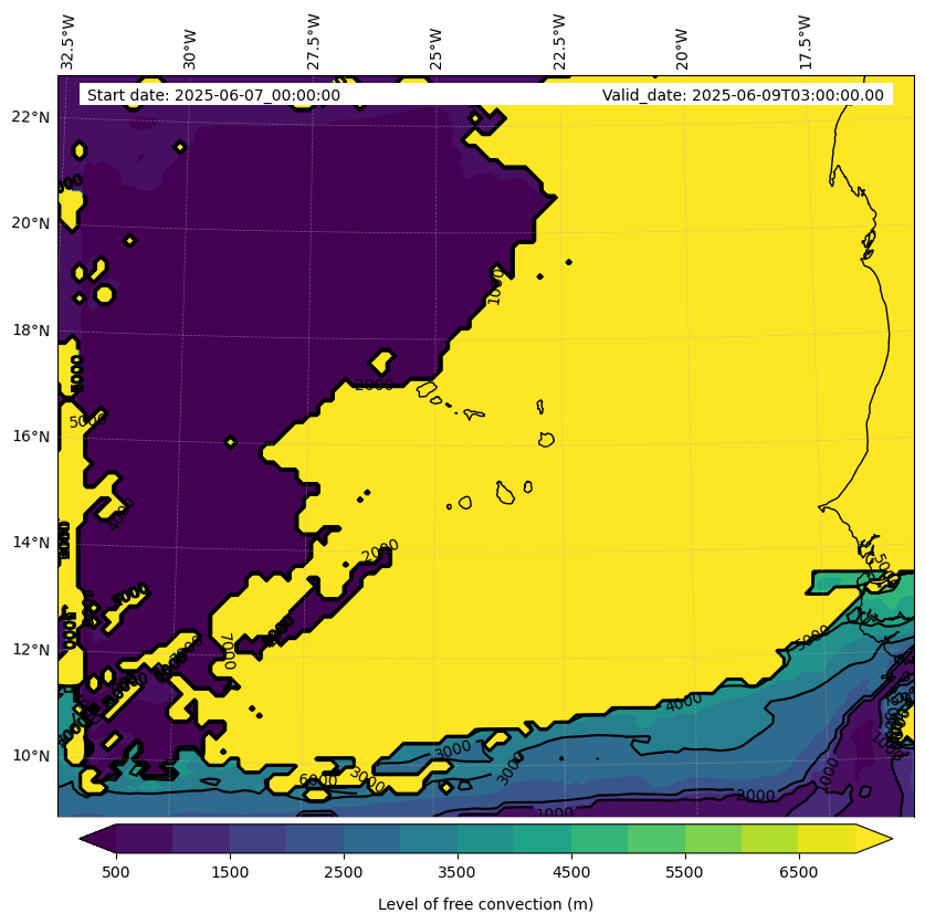 - Level of free convection (m)