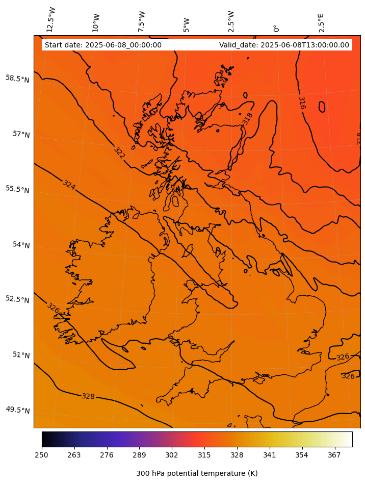 - Equivalent Potential Temperature (K)- 300 hPa