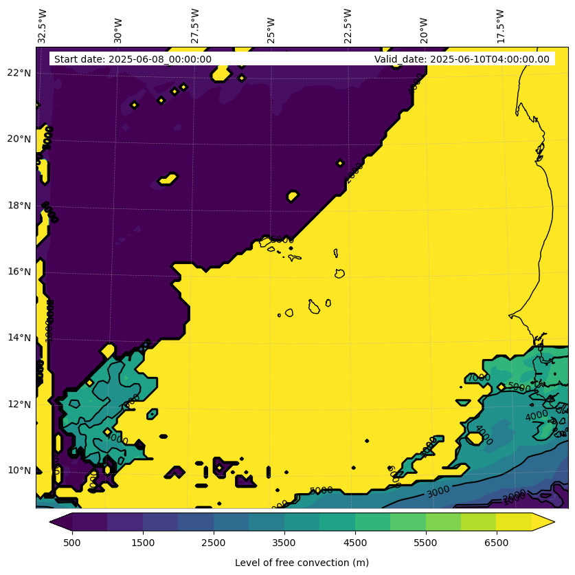 - Level of free convection (m)