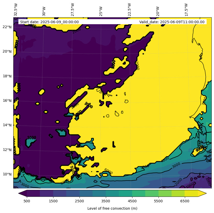 - Level of free convection (m)
