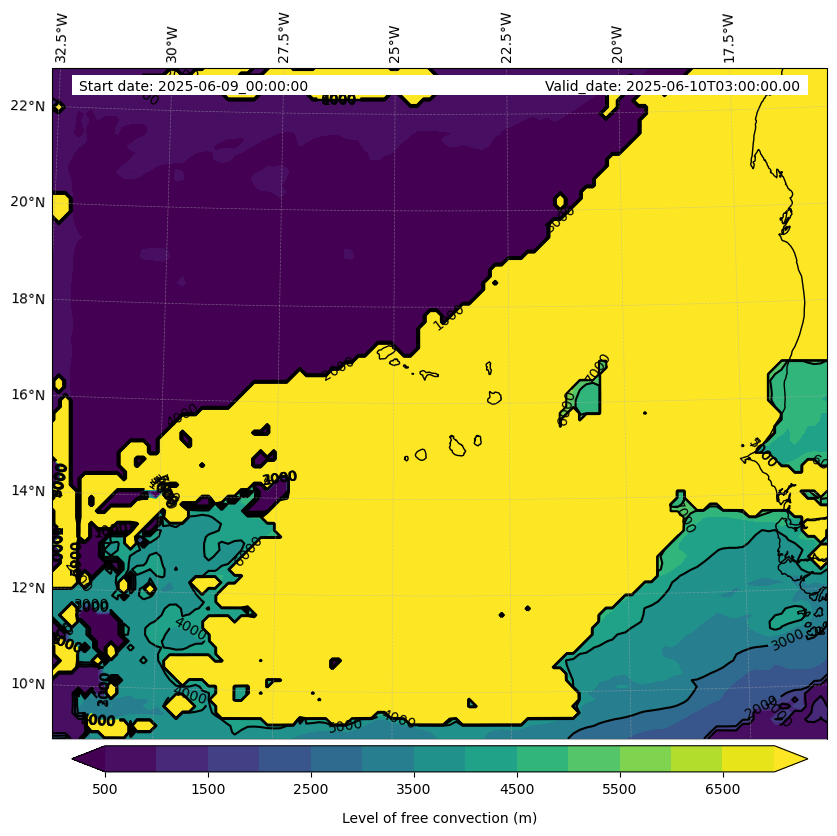 - Level of free convection (m)