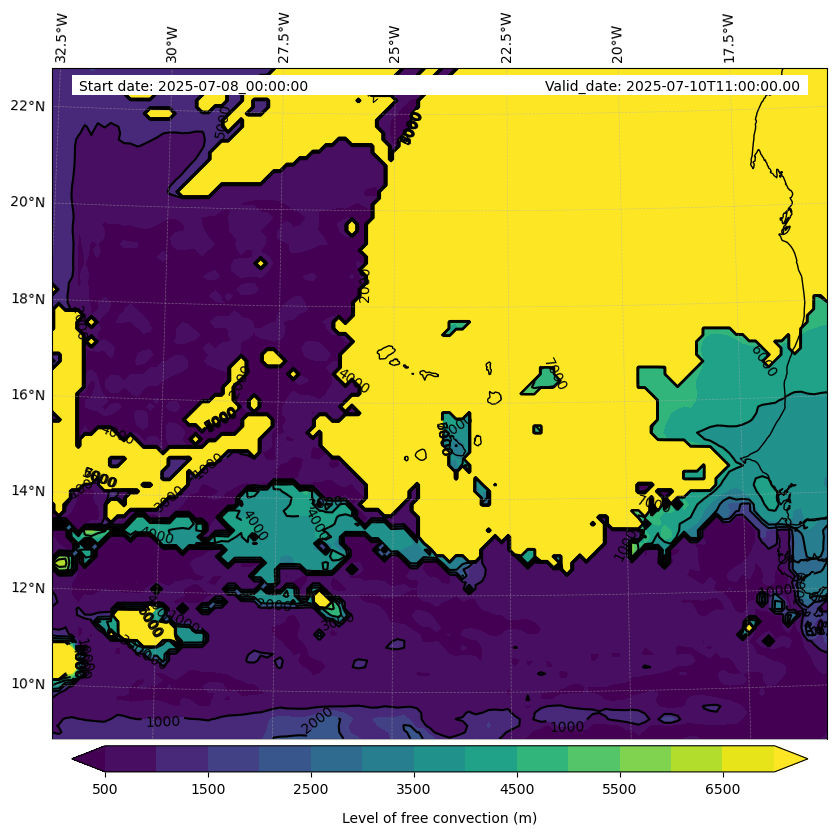 - Level of free convection (m)