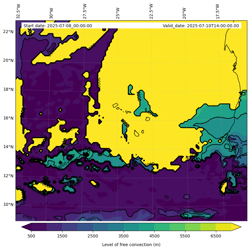 - Level of free convection (m)