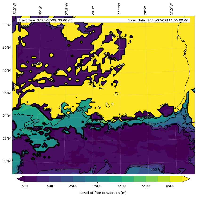 - Level of free convection (m)
