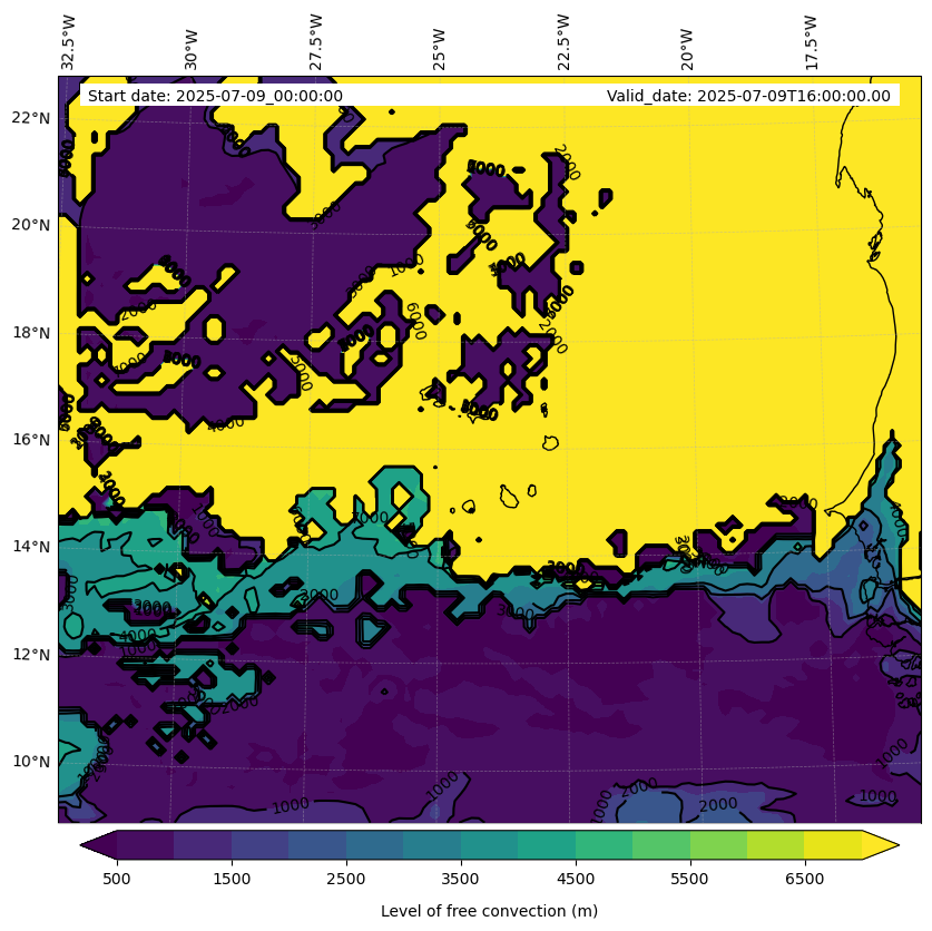 - Level of free convection (m)