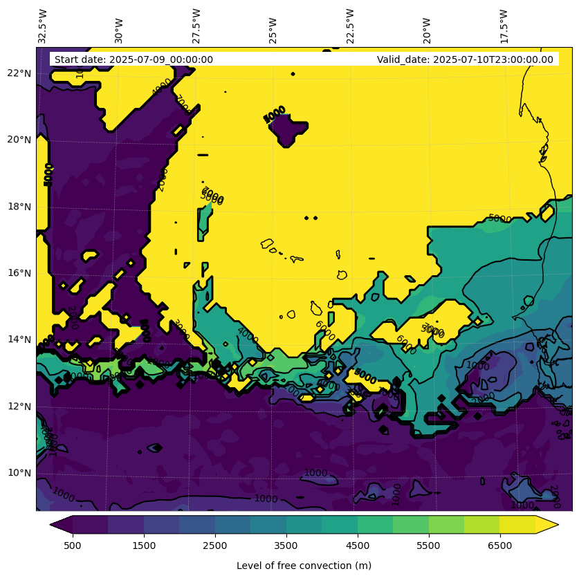 - Level of free convection (m)