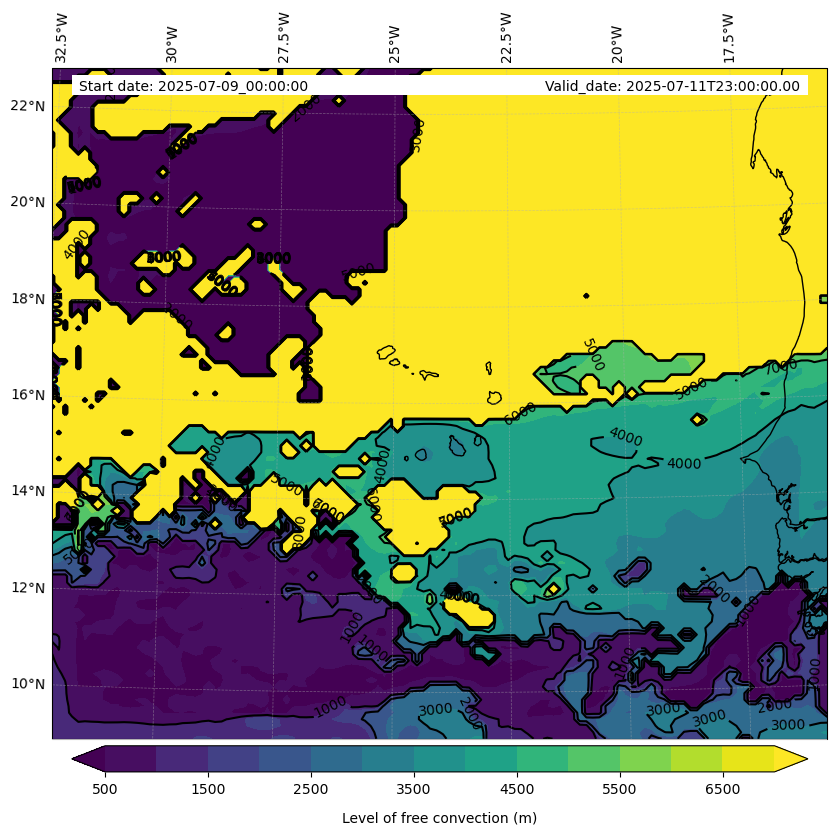 - Level of free convection (m)