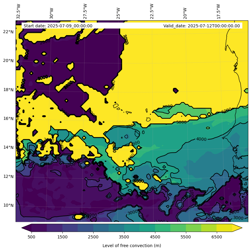 - Level of free convection (m)