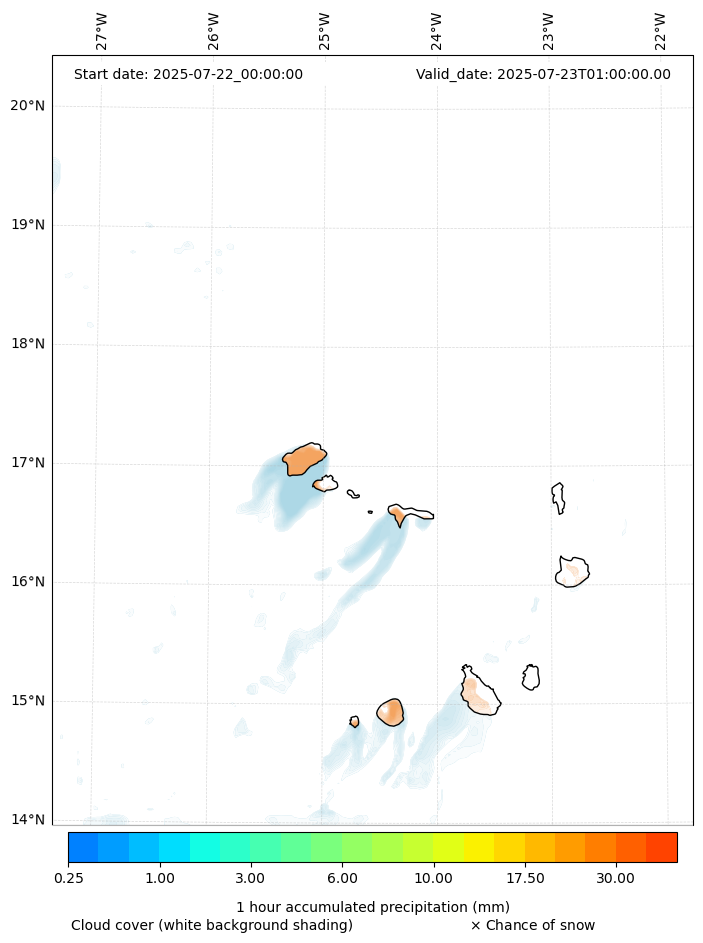 - Snow mixing ratio (g kg¯¹)