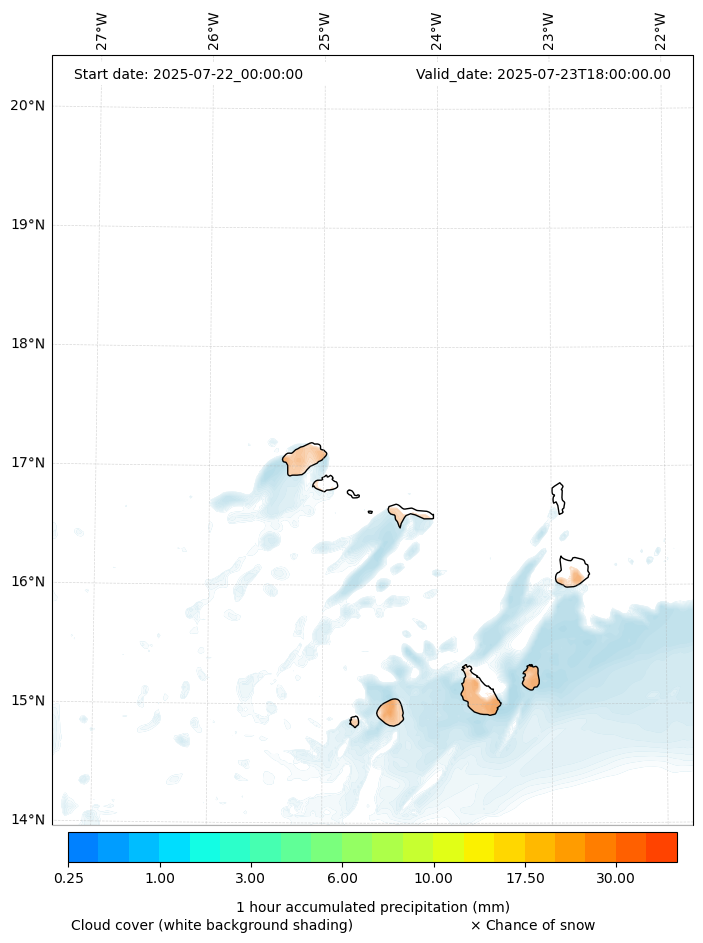 - Snow mixing ratio (g kg¯¹)