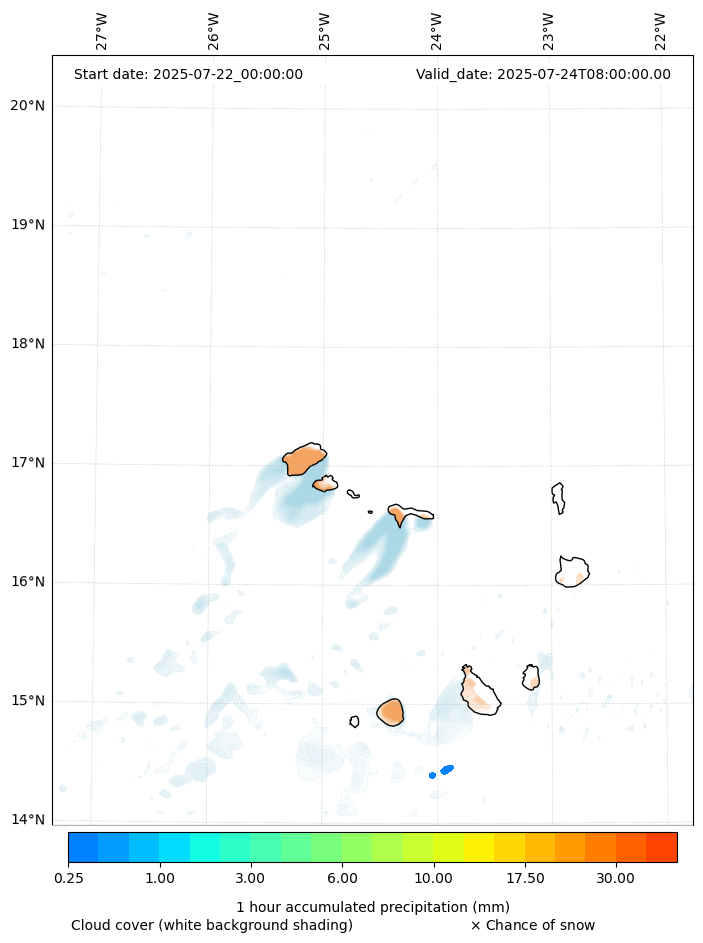 - Snow mixing ratio (g kg¯¹)