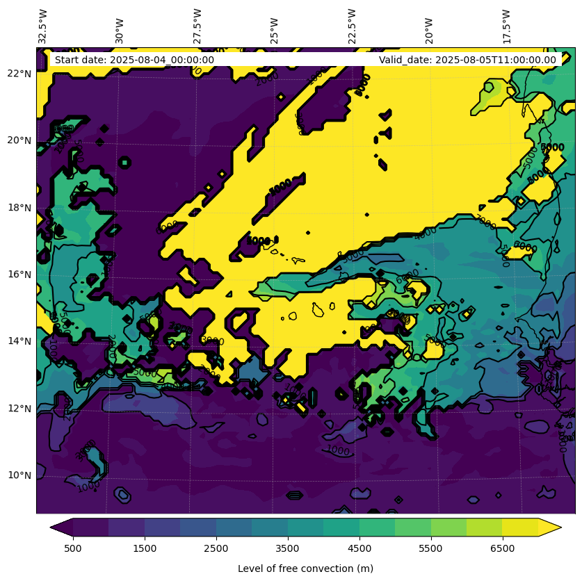 - Level of free convection (m)