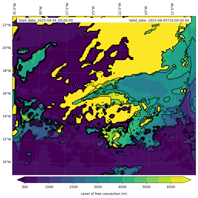 - Level of free convection (m)