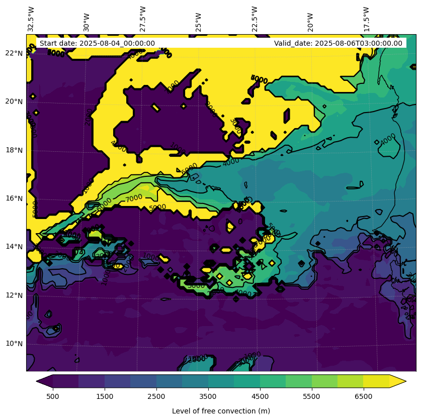 - Level of free convection (m)